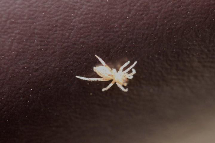 マダラフクログモ幼体 「フクログモ科」のクモは、隙間や窪み・葉などに、糸で袋状の住居を作る事からその