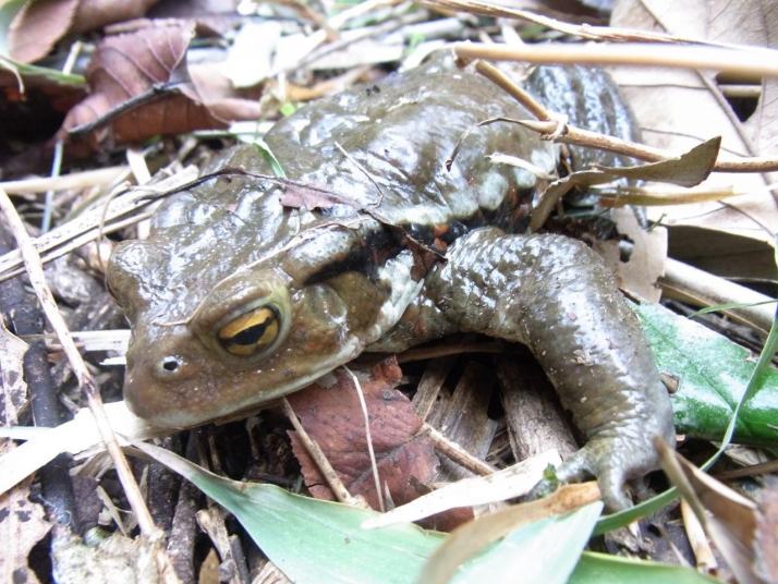 アズマヒキガエル♂ マダケの間伐作業で竹林に入った時、傍の木の枝から落ちてきてビックリ。抱接を終え